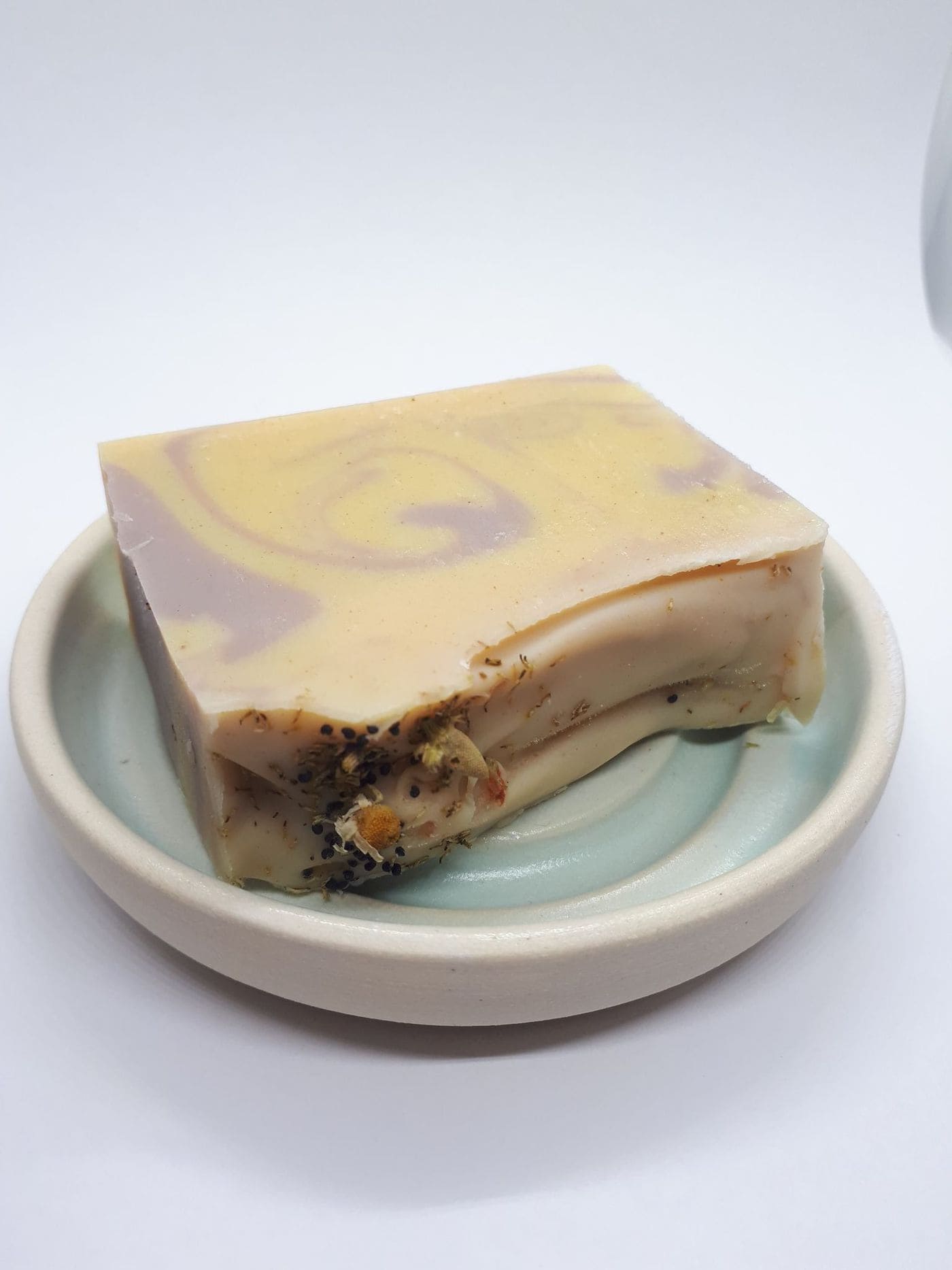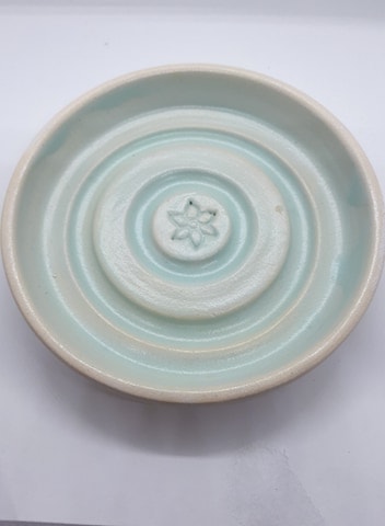 Locally made ceramic soap dish. This soap dish allows the soap to drain excess moisture. Ensure the water does not rise above the ridges and touch the soap. Can be easily cleaned and wiped dry ready to be used again.